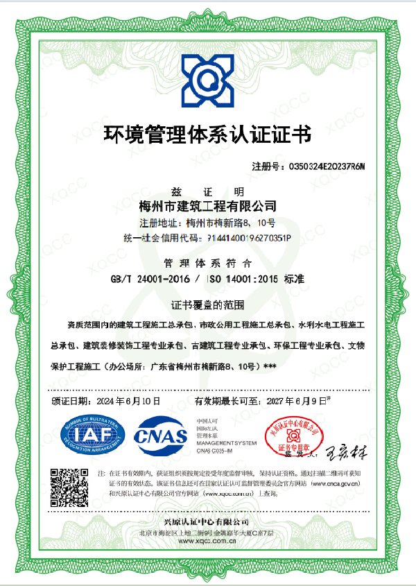 環(huán)境管理體系認(rèn)證證書(shū)