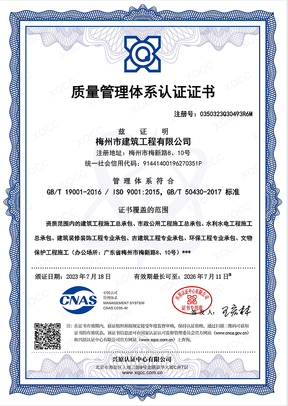 質(zhì)量管理體系認(rèn)證證書(shū)